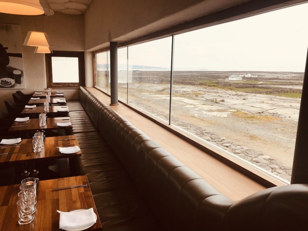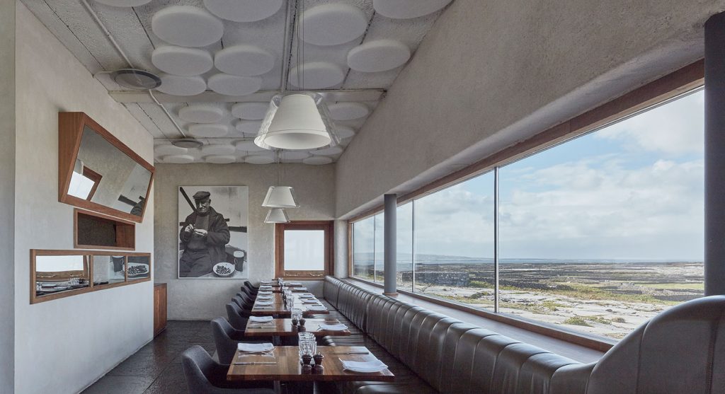 In January 2021 the restaurant was awarded a prestigious Michelin Green Star for its efforts to promote sustainability and environmental ethics. Founded in 2007 by chef and Inis Meáin native Ruairí de Blacam and design consultant Marie-Thérèse de Blacam, the eco-friendly restaurant is contemporary in style, with incredible views of Inis Meáin, Galway Bay and Connemara.